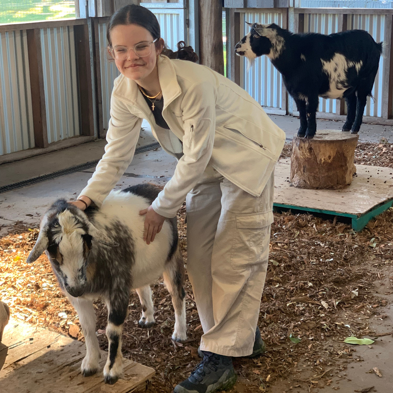 Malika also had plenty of hands-on opportunities on her placement at Green Connect. During her placement, Malika worked in the field and on the farm, testing the soil, spreading hay, and feeding animals such as chickens and goats!