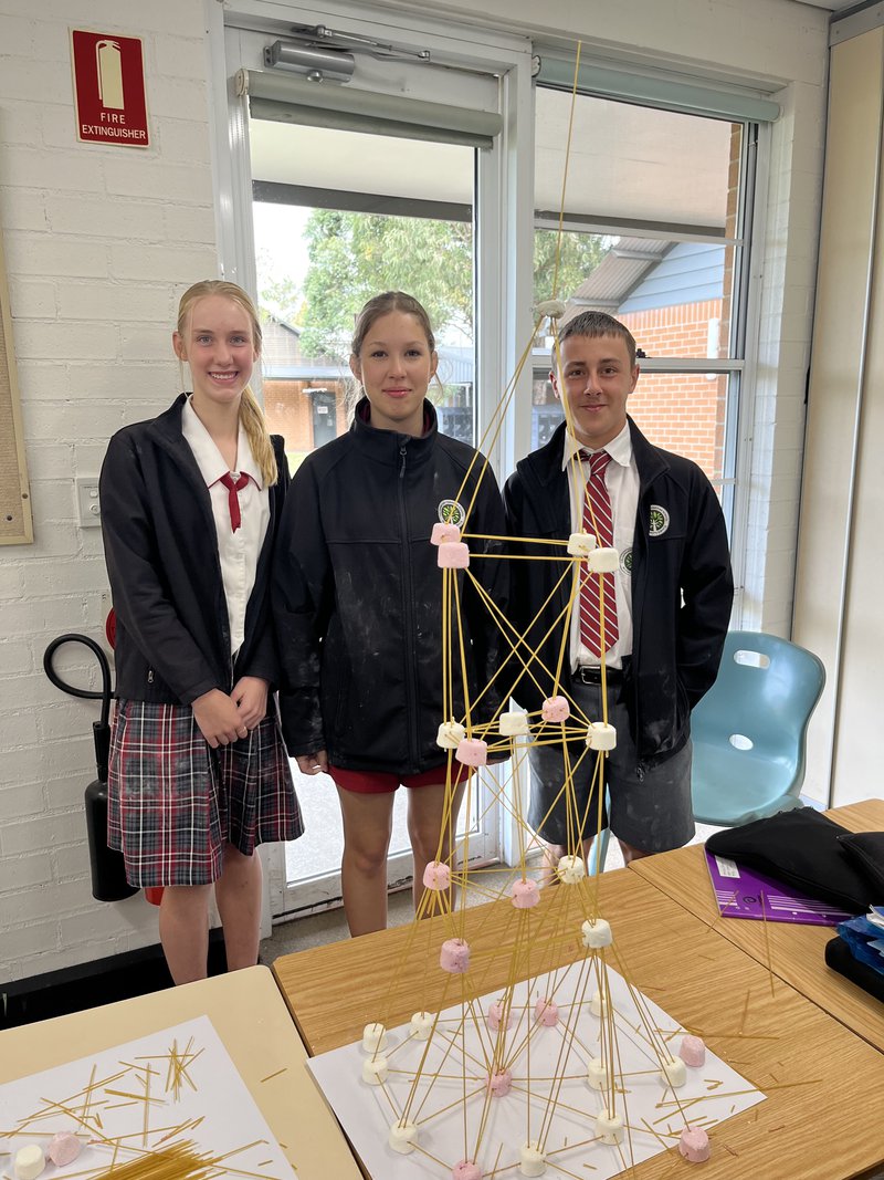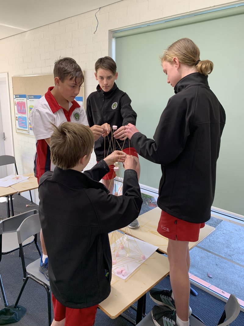 At Calderwood, Maths classes from Years 7-9 participated in a variety of challenges. The main challenge attempted by all classes was the Marshmallow Tower Challenge, where students had to build the tallest tower using marshmallows and spaghetti. Photos of our students undertaking the activities were sent to the ANU as part of a national contest.