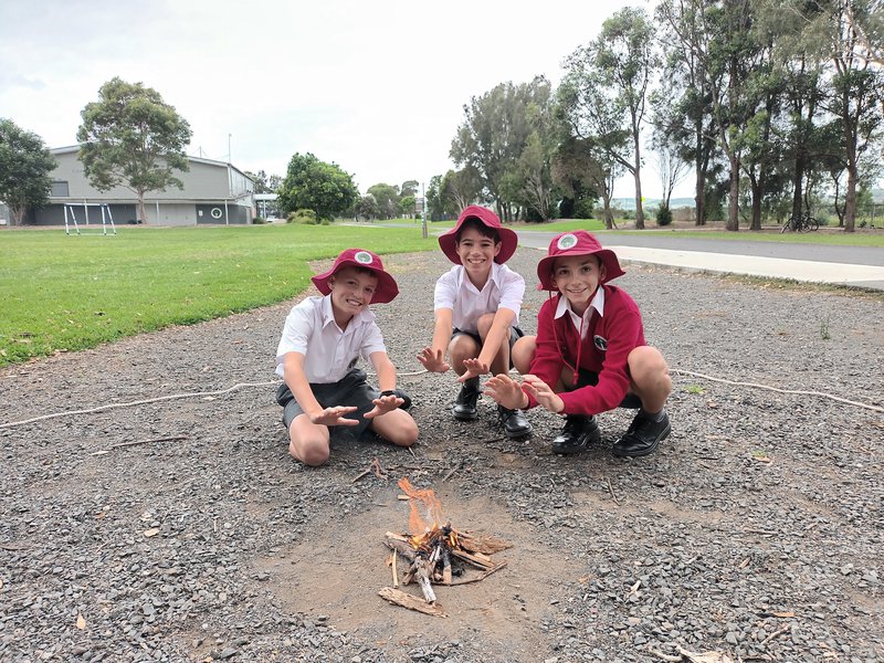 Students have learned about the 'fire triangle' and the integral role of each element: fuel, oxygen and heat. They have learned about the dangers associated with fire, and been reminded to talk to mum and dad if they want to light one at home or at a campsite. They have enjoyed watching Mr Hutton use different methods to light fires, and enthusiastically embraced the opportunity to set and light their own fire in small groups.