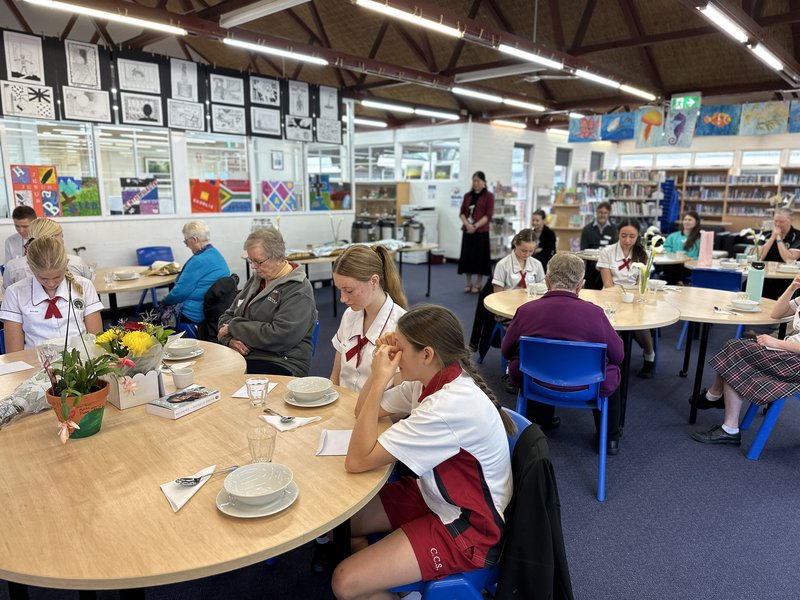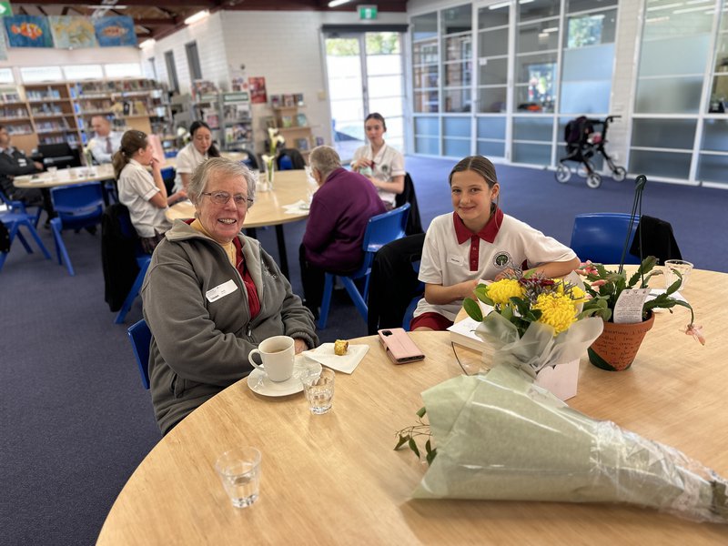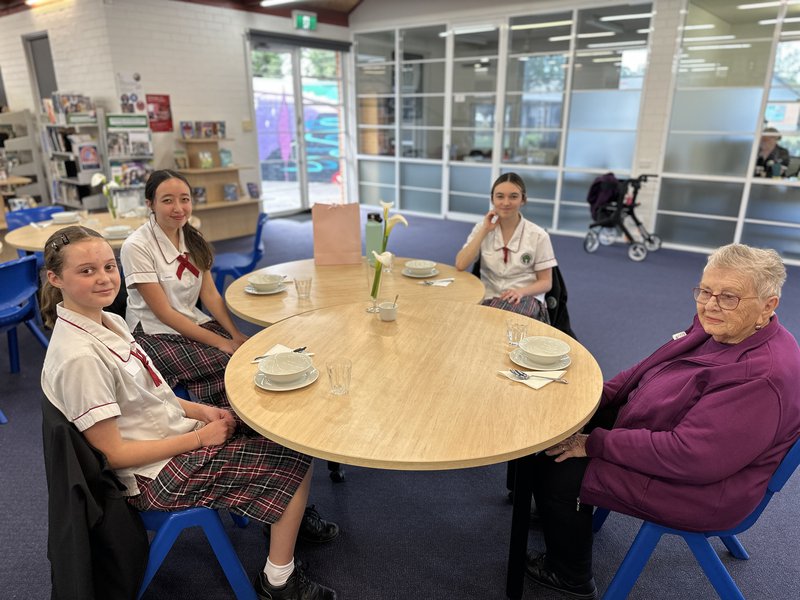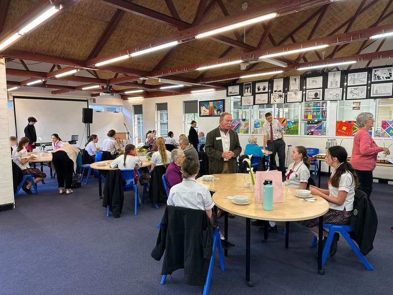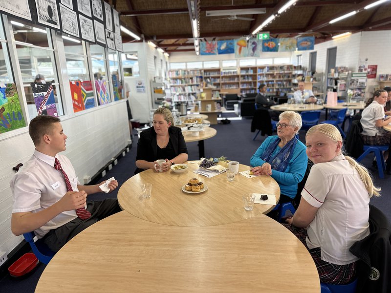 Mr Leigh Roberts, the chaplain at St Luke's Village, coordinated the program with us, where nine of the village's residents met with our students for 30 minutes during their lunchtime on Thursdays.