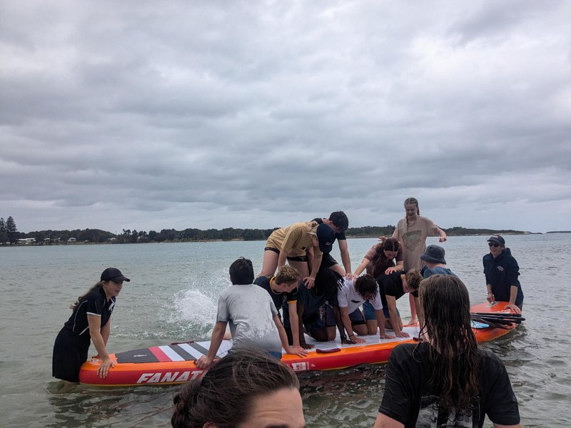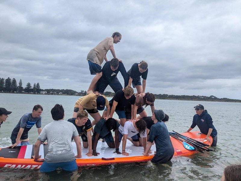 One of the day’s standout moments came when a group of determined students successfully formed a human pyramid on a large stand-up paddleboard, much to the delight of their peers and teachers. This memorable activity not only showcased their teamwork, but highlighted the fun and friendship that Year 12 promises.