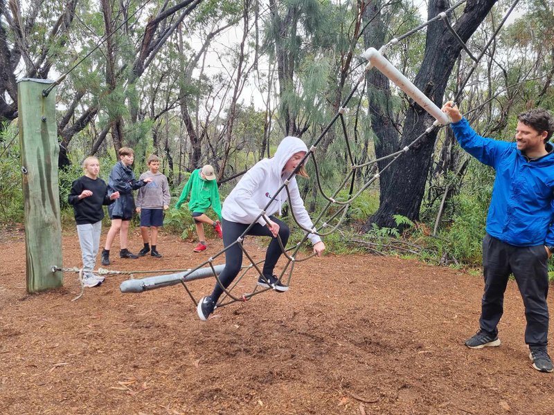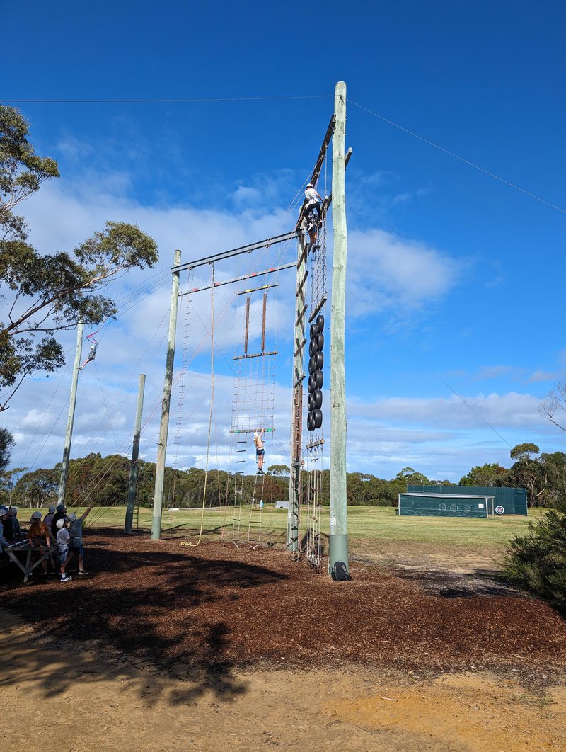 After a decent 50 minutes of singing, talking, and yelling, we arrived at the campsite, impatient to see who was in our rooms and which rooms we were in. We dropped off our bags, set up our sleeping bags and wandered around the room. Outside were trees and climbing structures, and God’s beautiful nature was in every view we had. After some exploring, we met up with our camp leaders. Our favourite was Garrick. We had morning tea, which was biscuits; Group 1 went off to our first activity, the vertical climb.